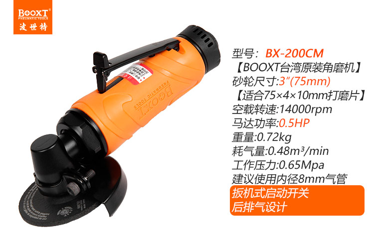東莞市強勁五金工具有限公司提供臺灣BOOXT波世特品牌氣動工具,氣動小型角磨機BX-200CM廠家直銷,首件享特價。咨詢熱線:4008301980