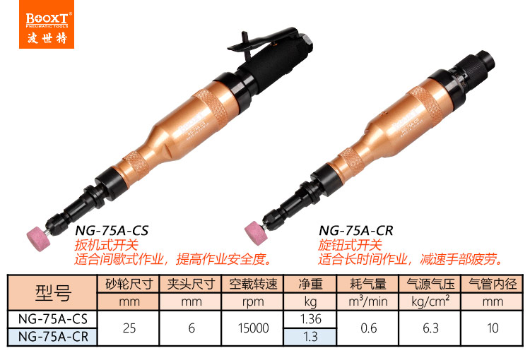 東莞市強(qiáng)勁五金工具有限公司提供臺(tái)灣BOOXT波世特品牌氣動(dòng)工具,加長(zhǎng)刻磨機(jī)NG-75A-CR廠家直銷,首件享特價(jià)。咨詢熱線:4008301980