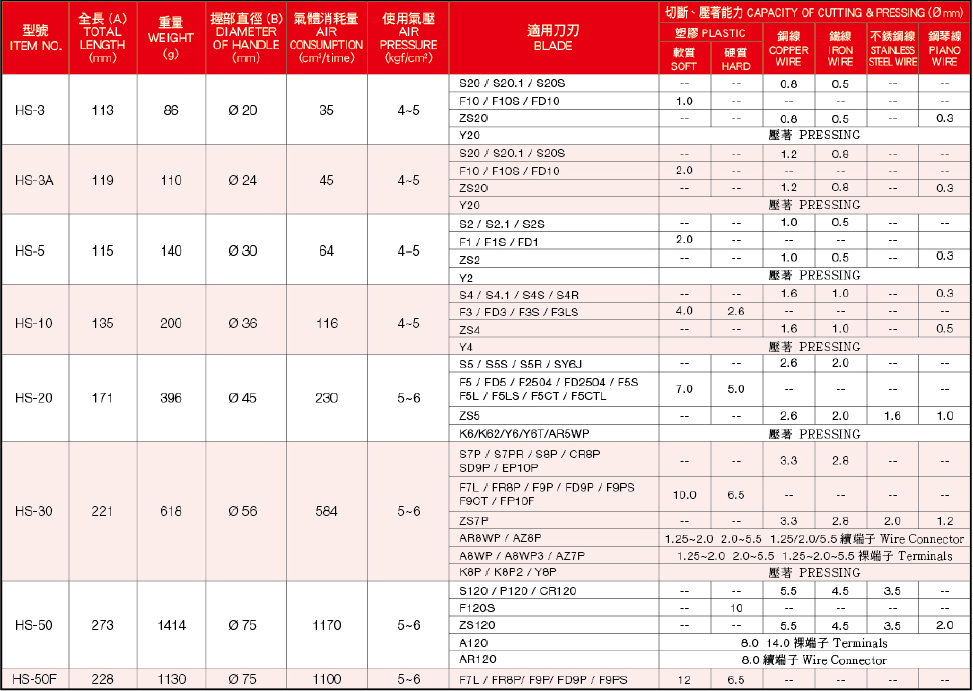 3.慎選本體及刀刃: 依客戶所要剪的工件,選配最適合的本體跟刀刃.以小剪大無法達(dá)成工作上的需求 (一般而言要以小剪大,就是加大空氣源 ,如此容易造成本體及刀刃損壞。) 以大剪小,刀刃使用壽命將嚴(yán)重減少。