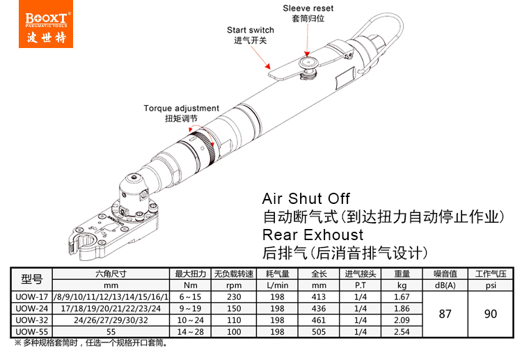 東莞市強勁五金工具有限公司提供臺灣BOOXT波世特品牌氣動工具,風動開口扳手UOW-32廠家直銷,首件享特價。咨詢熱線:4008301980