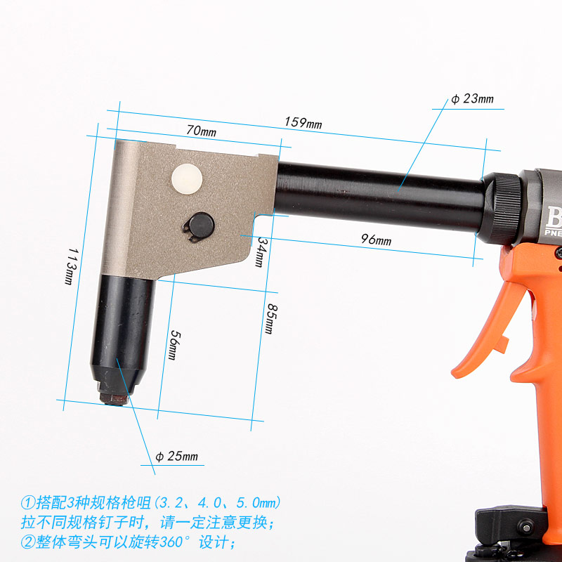 8.彎頭設(shè)計(jì),適用于狹窄、偏角工位鉚接作業(yè)。