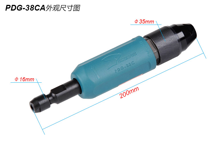 • 產(chǎn)品參數(shù): 夾頭能力:M3,M6 【標(biāo)配M6】 馬達(dá)功率:0.38HP 空載轉(zhuǎn)速:22000rpm 耗 氣 量:0.45m3/min 全 長(zhǎng):200mm 重 量 : 0.50kg 【旋鈕開(kāi)關(guān)/塑鋼外殼】