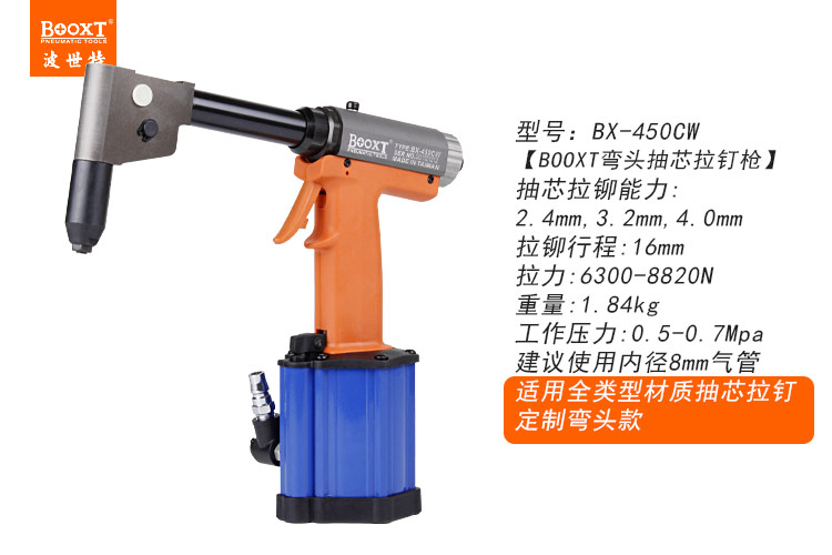東莞市強(qiáng)勁五金工具有限公司提供臺灣BOOXT波世特品牌氣動(dòng)工具,彎頭氣動(dòng)拉鉚槍BX-450CW廠家直銷,首件享特價(jià)。咨詢熱線:4008301980
