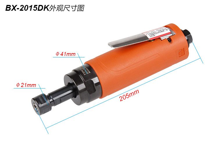 • 產(chǎn)品參數(shù): 夾頭能力:M3,M6 (標(biāo)配M6) 馬達(dá)功率:0.5HP 空載轉(zhuǎn)速:5000rpm 全 長(zhǎng):205mm 重 量 : 0.82kg 耗 氣 量:0.38m3/min 【經(jīng)濟(jì)型/慢速】