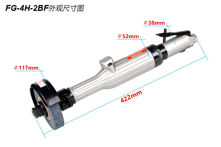 • 產(chǎn)品參數(shù): 砂輪尺寸:100*19*12.7mm(4寸) 馬達(dá)功率:0.9HP 空載轉(zhuǎn)速:9500rpm 耗 氣 量:0.8m3/min 全 長(zhǎng):422mm 重 量:2.4kg 【工業(yè)型/扳機(jī)開關(guān)】