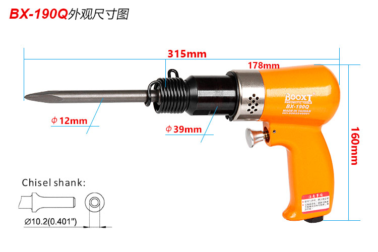 東莞市強(qiáng)勁五金工具提供臺(tái)灣BOOXT波世特品牌,氣動(dòng)沖擊鏟BX-190Q廠家直銷(xiāo),首件享特價(jià)。咨詢熱線:4008301980