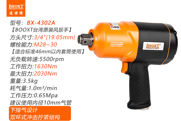 東莞市強(qiáng)勁五金工具有限公司提供臺(tái)灣BOOXT波世特品牌氣動(dòng)工具,中型風(fēng)炮BX-4302A廠家直銷,首件享特價(jià)。咨詢熱線:4008301980