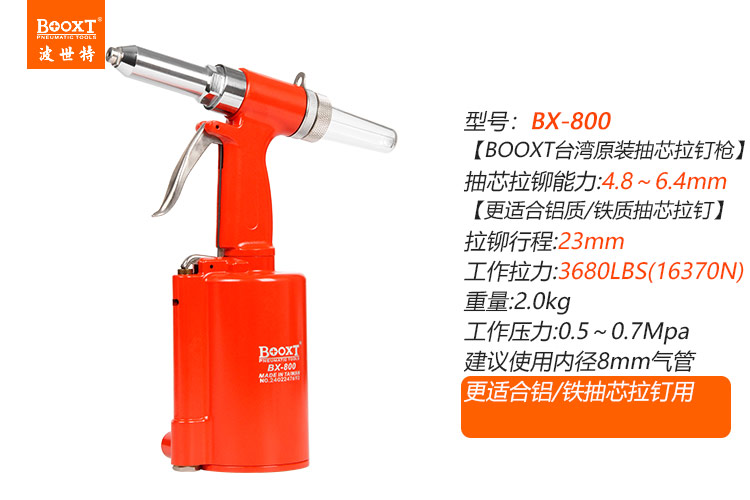 東莞市強(qiáng)勁五金工具有限公司提供臺(tái)灣BOOXT波世特品牌氣動(dòng)工具,氣動(dòng)抽芯鉚釘槍BX-800廠家直銷,首件享特價(jià)。咨詢熱線:4008301980