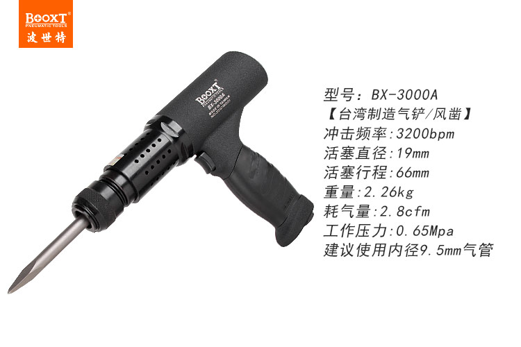 東莞市強勁五金工具提供臺灣BOOXT波世特品牌,氣動型沖擊鏟BX-3000A廠家直銷,首件享特價。咨詢熱線:4008301980