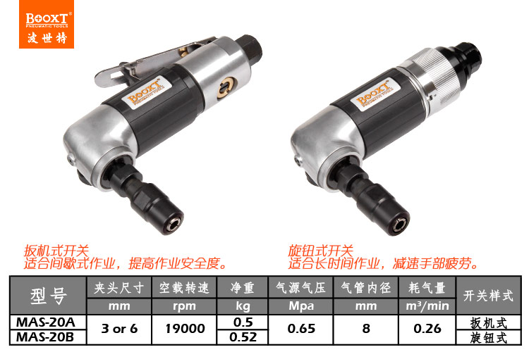 東莞市強勁五金工具有限公司提供臺灣BOOXT波世特品牌氣動工具,直角氣動打磨機MAS-20A廠家直銷,首件享特價。咨詢熱線:4008301980